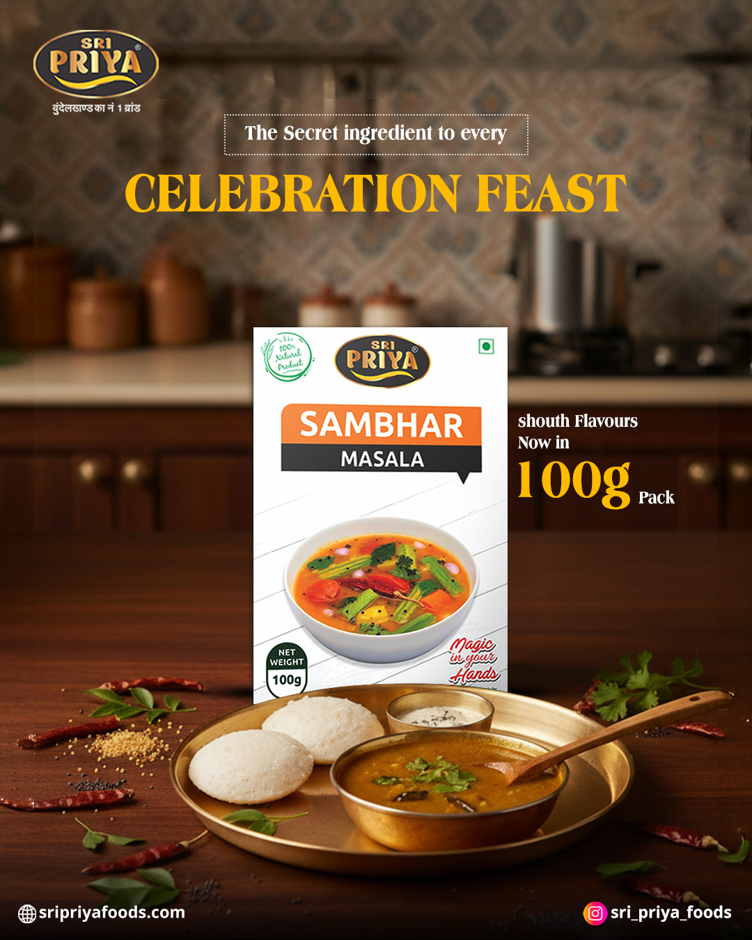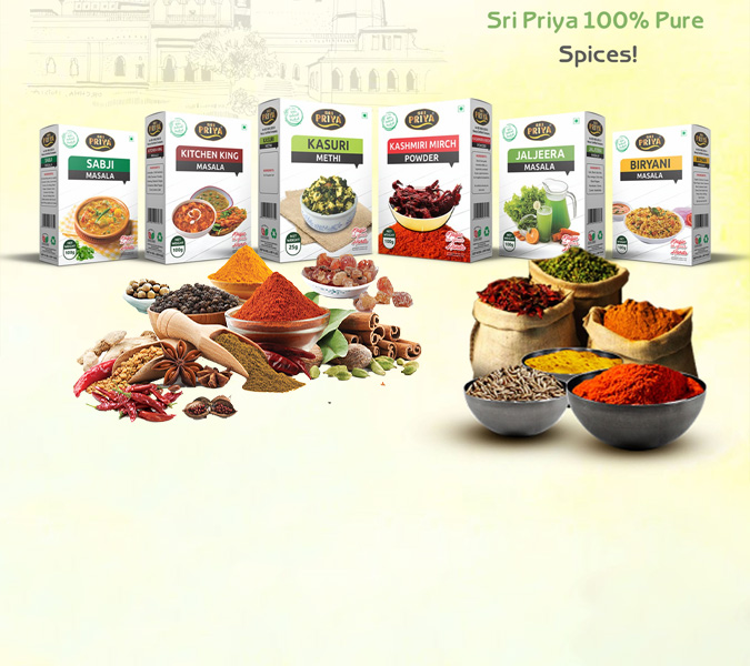 Sri Priya Foods brings you 100% pure and carefully blended spices that add authentic Indian flavour to every meal.
