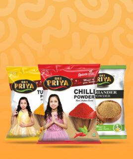 Haldi, Mirch, Dhaniya se lekar Besan aur Achar Masala tak – Sri Priya Foods laata hai 100% pure, hygienically processed aur bharosemand products jo har ghar ki pehchaan bante hain.