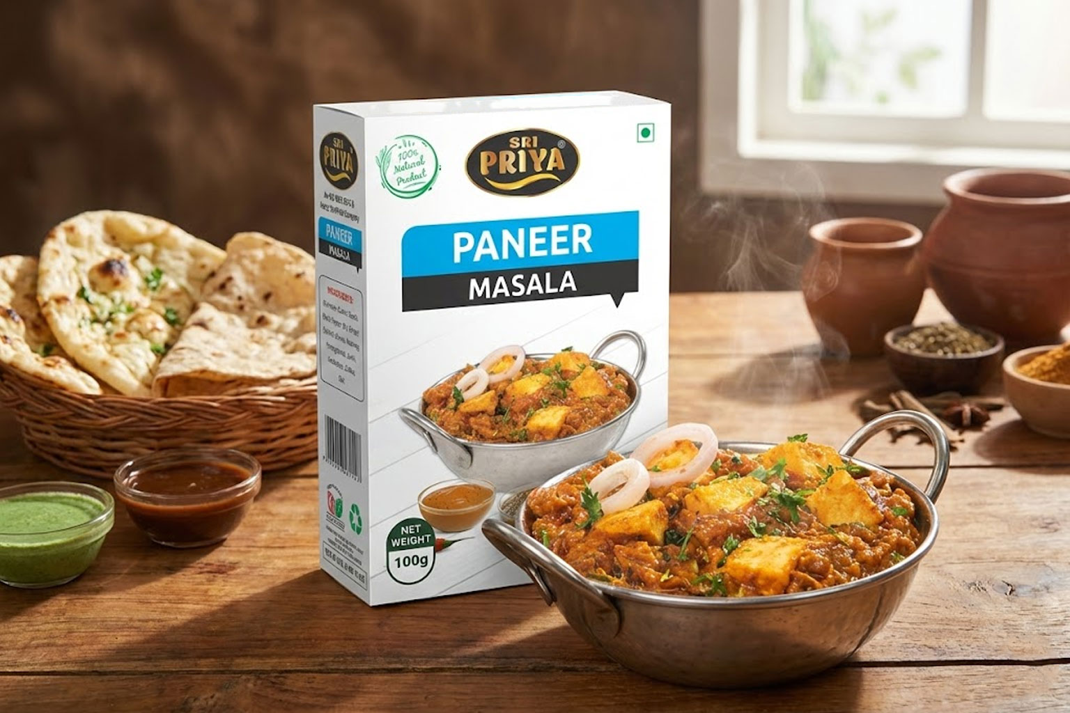 Sri Priya Foods Garam Masala carefully prepared hota hai premium whole spices se jo paneer dishes ke taste ko overpower kiye bina enhance karta hai.