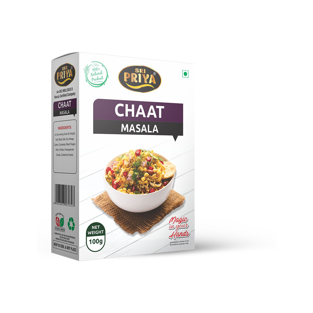 Sri Priya Foods Chaat Masala is a traditional Indian spice blend crafted to enhance the taste of everyday snacks and chaat recipes. Prepared using premium-quality natural ingredients, this masala offers a refreshing combination of tanginess, mild spice, and aromatic flavours.